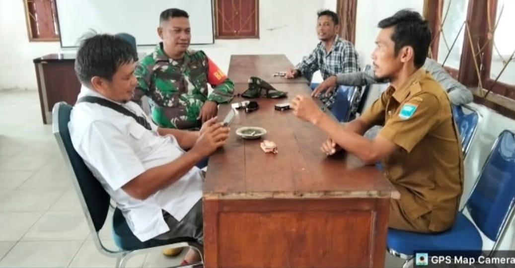 Babinramil 03/Sioban Sertu P Situngkir Sambangi Pemdes Matobe, Kec. Sipora Selatan, Bahas Program Kegiatan Yang Sedang Berlangsung