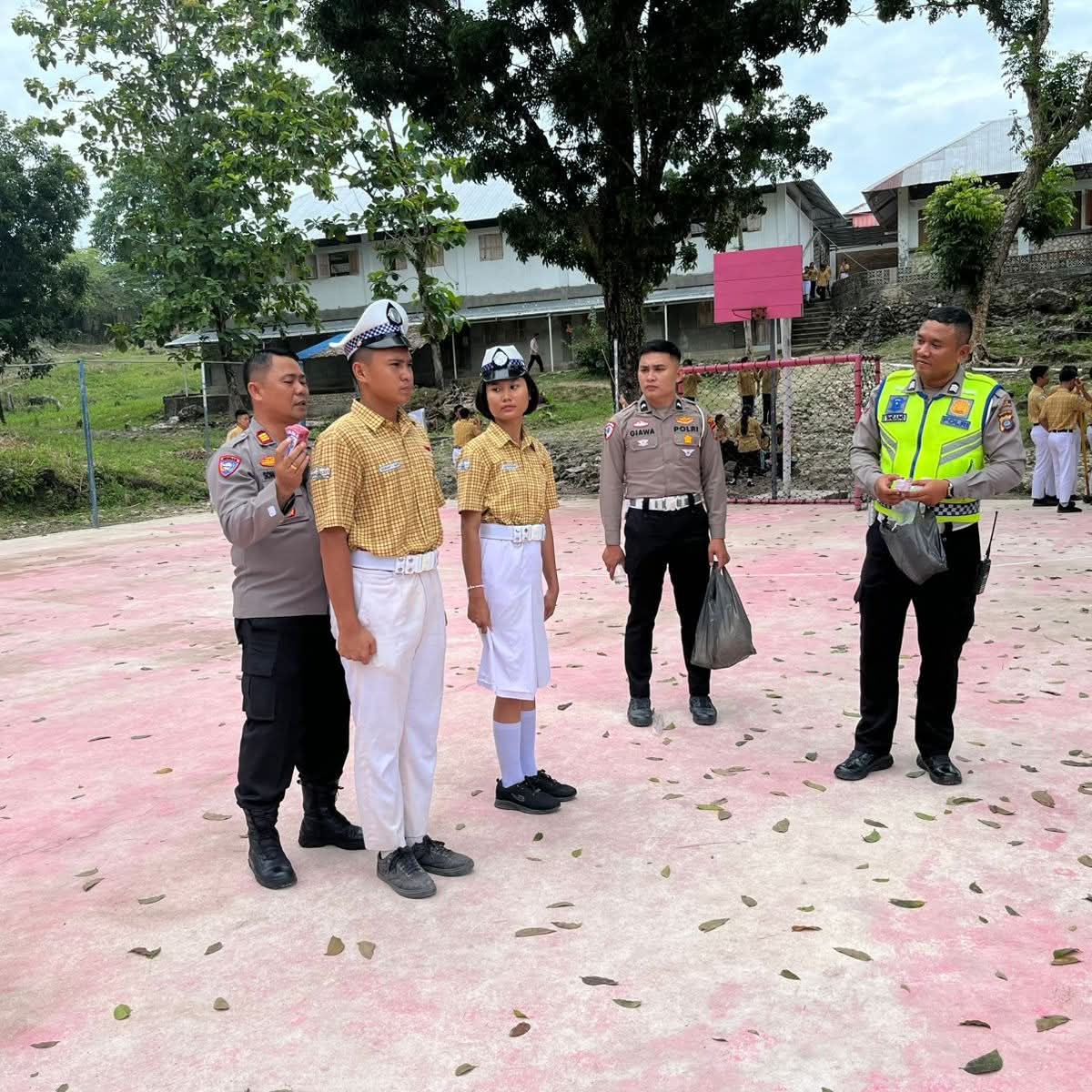 Kasat Binmas Polres Nias Selatan Bersama Personil Sat Lantas Berikan Edukasi Kepada Siswa/i SMA Katholik Bintang Laut Bentuk PKS