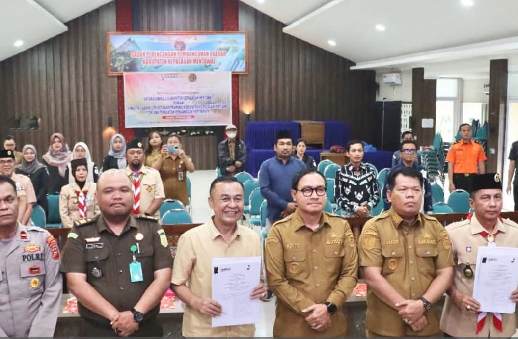 SuaraSINDO.com : KEPULAUAN MENTAWAI - Badan Pengawas Pemilihan Umum (Bawaslu) Kabupaten Kepulauan Mentawai bersama Kwartir Cabang (Kwarcab) 0315 Gerakan Pramuka Kepulauan Mentawai menandatangani Nota Kesepakatan (MoU) tentang penguatan pengawasan partisipatif Pemilu.