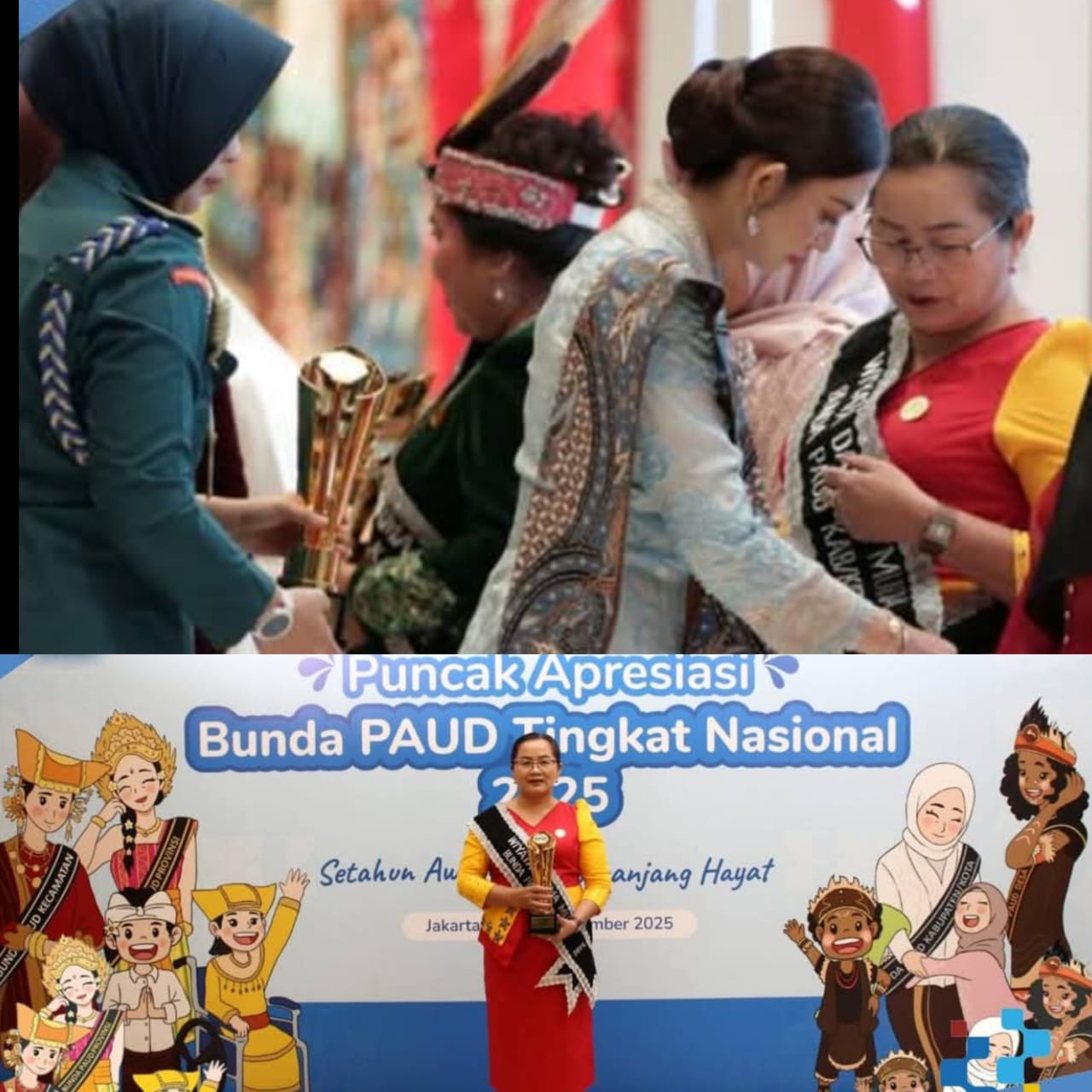 Suarasindo.com : Nias Selatan - Dinas Kominfo ; Bunda PAUD Kabupaten Nias Selatan Militina Sokhiatulo Laia , meraih Penghargaan Apresiasi Bunda PAUD Tingkat Nasional yang diserahkan langsung oleh Bunda PAUD Nasional Selvi Gibran Rakabuming Raka pada puncak Apresiasi Bunda PAUD se-Indonesia , yang dilaksanakan di Hotel Sultan Jakarta, Kamis (13/11/2025).
