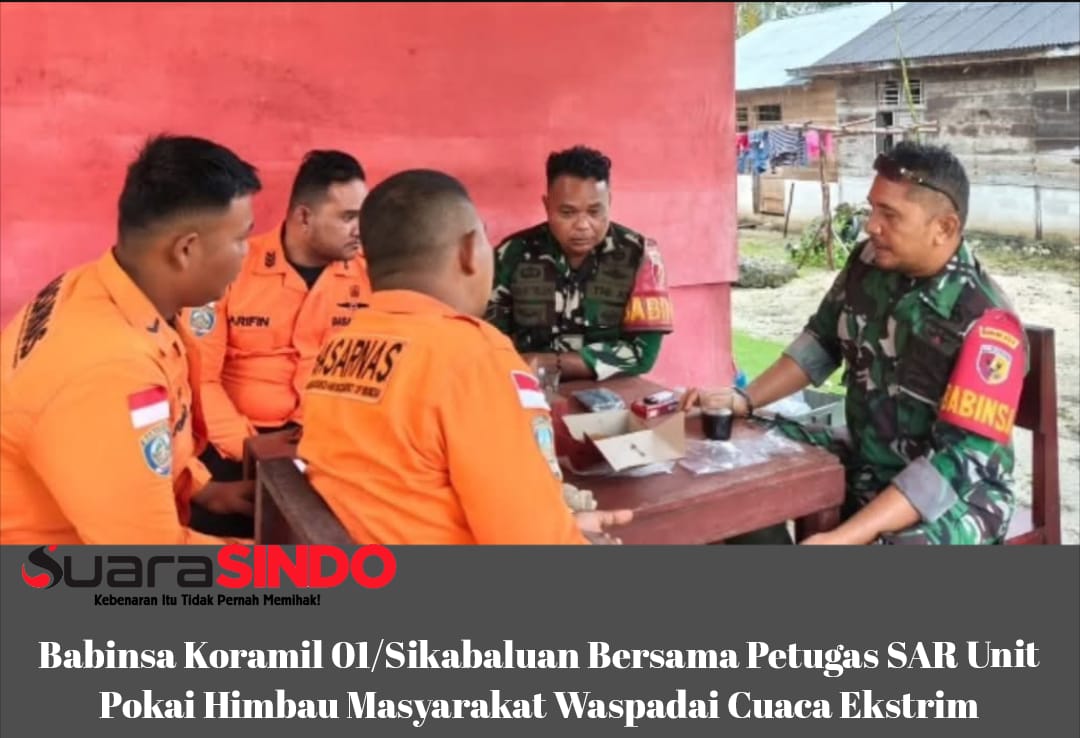 / Daerah / Babinsa Koramil 01/Sikabaluan Bersama Petugas SAR Unit Pokai Himbau Masyarakat Waspadai Cuaca Ekstrim /
