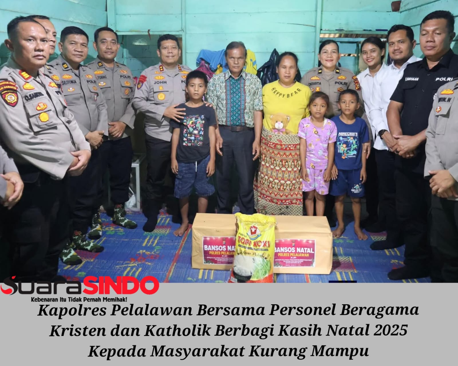 SuaraSINDO.com : PELALAWAN - Berbagi Kasih Menyambut Natal 2025 Dalam semangat kasih dan kepedulian menyambut Natal 2025, Kapolres Pelalawan AKBP John Louis Letedara, S.I.K. bersama personel Polres Pelalawan yang beragama Kristen dan Katholik melaksanakan kegiatan bantuan sosial kepada masyarakat kurang mampu dan berkebutuhan khusus, Senin (15/6/2025).