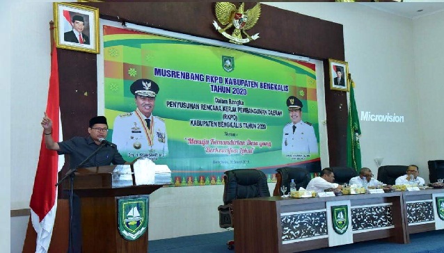 Suarasindo.com Bengkalis - Pemerintah Kabupaten Bengkalis melaksanakan kegiatan Musyawarah Rencana Pembangunan (Musrenbang) pembahasan Rencana Kerja Pemerintah Daerah (RKPD) Kabupaten Bengkalis 2020, di Aula Kantor Bupati Lantai 4. Kegiatan Musrenbang ini merupakan agenda kegiatan tahap lanjutan yang sebelumnya telah diawali dengan rangkaian Musyawarah Perencanaan Pembangunan tingkat Dusun, Desa, Kelurahan dan Kecamatan se-Kabupaten Bengkalis.