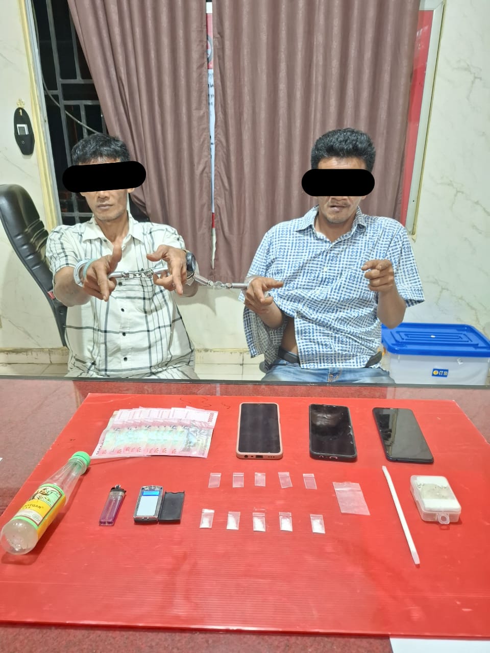 Kapolres Kuansing, AKBP Pangucap Priyo Soegito, S.I.K, M.H., melalui Kasat Res Narkoba Polres Kuansing, AKP Novris H Simanjuntak, SH, MH, mengatakan "Dua tersangka yang diamankan adalah DA (44) residivis kasus narkoba dan AP (44) residivis kasus curat, Keduanya berperan sebagai pengedar narkotika jenis shabu,"