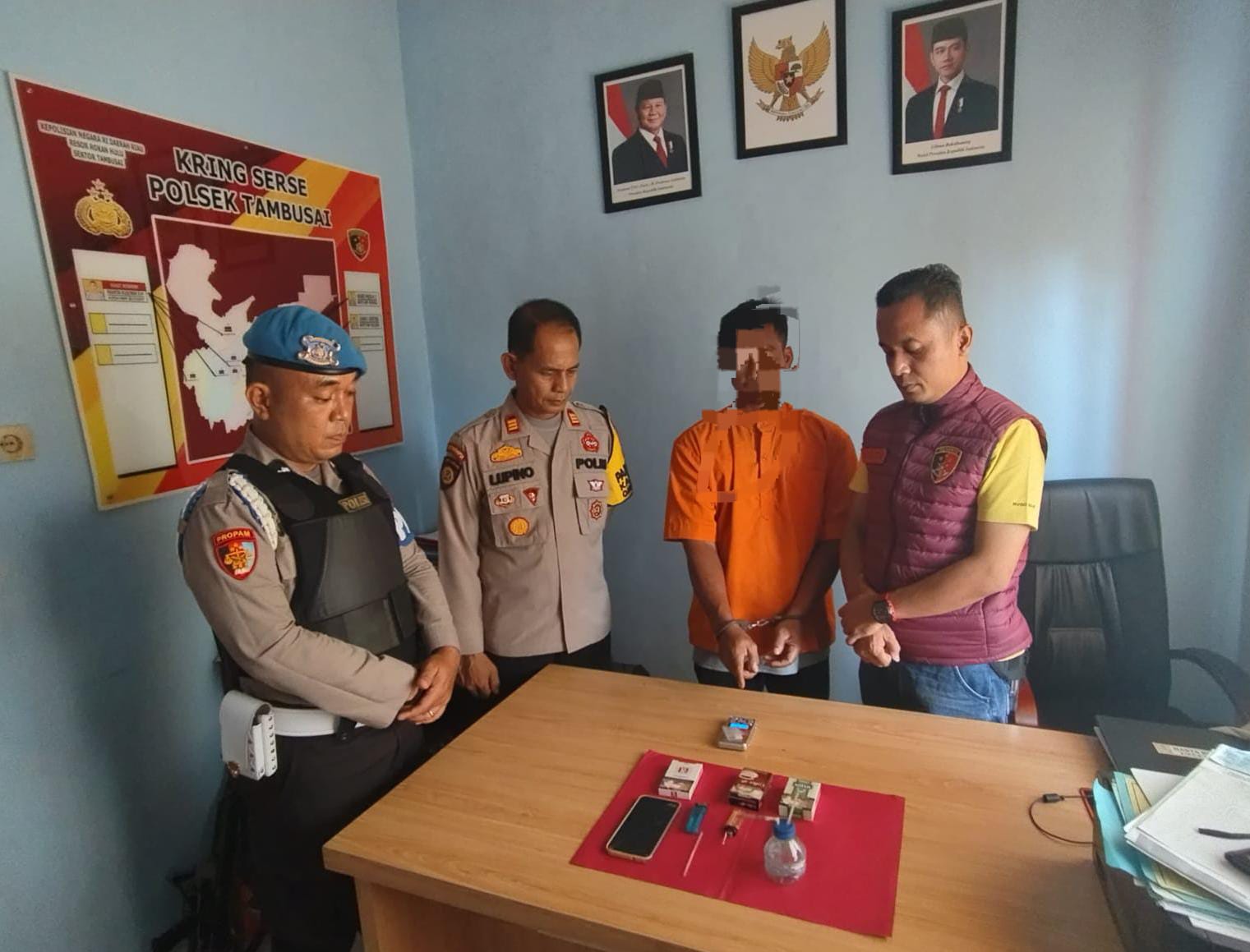 Maka, Kapolsek Tambusai memerintahkan Kanit Reskrim Aipda Marta Kusuma SH membentuk Tim, kemudian melakukan penyelidikan, Kanit membentuk Tim, kemudian melakukan penggerebekan di dalam Rumah ada Dua Laki-laki yang sedang mengkonsumsi Narkotika.