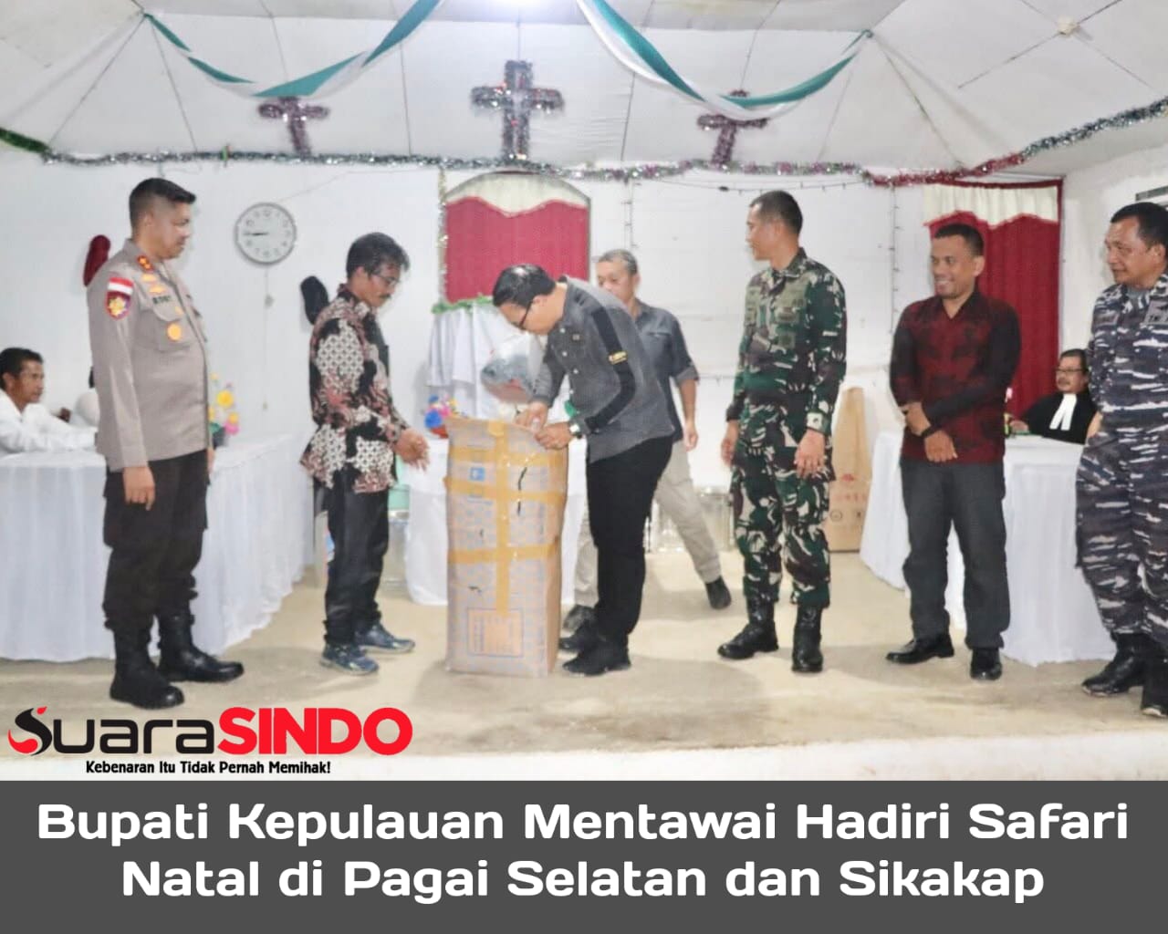SuaraSINDO.com : KEPULAUAN MENTAWAI — Bupati Kepulauan Mentawai Rinto Wardana, bersama jajaran Forkopimda, menghadiri rangkaian Safari Natal yang diselenggarakan di Kecamatan Pagai Selatan dan Kecamatan Sikakap pada 5–7 Desember 2025. Kegiatan ini merupakan bagian dari agenda Pemerintah Kabupaten Kepulauan Mentawai dalam menyambut perayaan Natal tahun 2025.