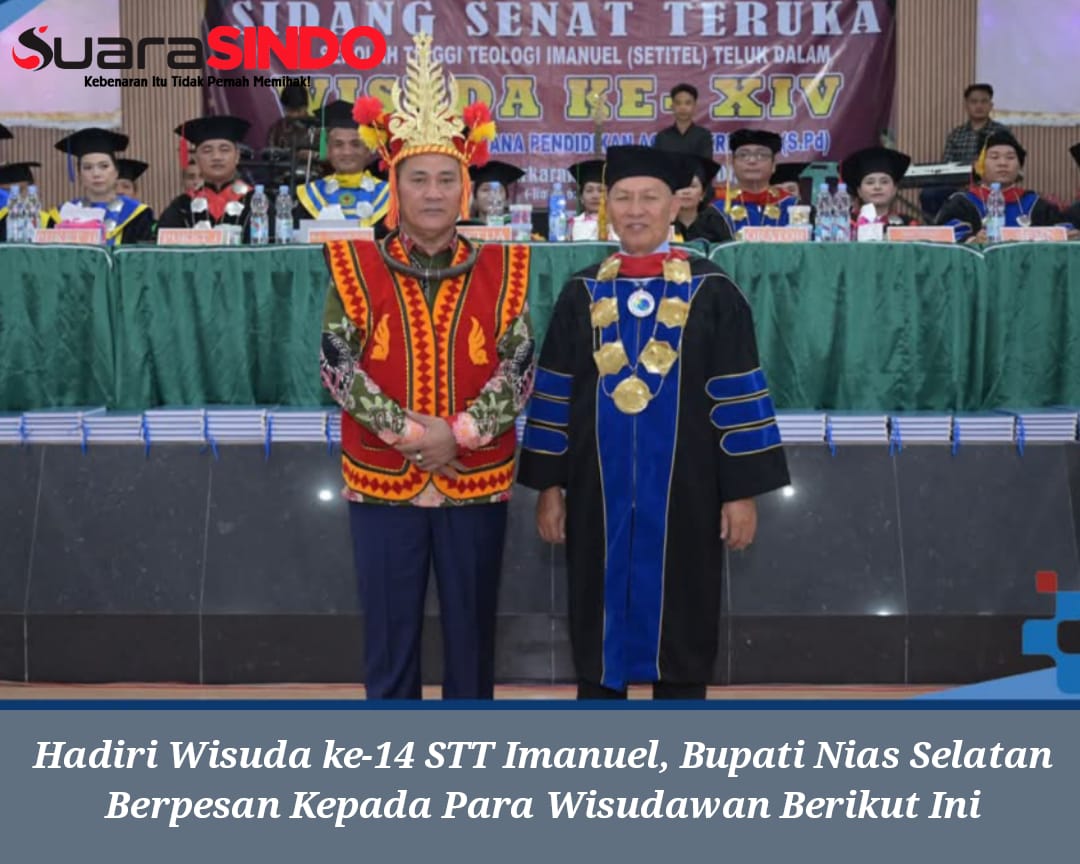SuaraSINDO.com - Nias Selatan | Dinas Kominfo ; Bupati Nias Selatan Sokhiatulo Laia, menghadiri undangan Sidang Senat Terbuka Wisuda ke-14 STT Imanuel Teluk Dalam (SETITEL), yang digelar di GPdI Sekinah Teluk Dalam. (Senin, 08/12/2025).